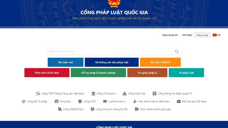 Cổng Pháp luật Quốc gia được khai trương vào ngày 31/5/2025, dưới sự chủ trì của Thủ tướng Chính phủ Phạm Minh Chính. Đây là một nền tảng pháp lý số với nhiều tính năng hỗ trợ thiết thực cho người dân và doanh nghiệp, nhằm mục tiêu công khai, minh bạch và hiệu quả trong công tác phổ biến, giáo dục pháp luật.