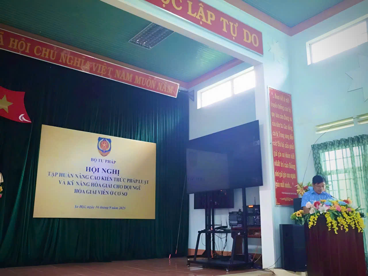 Ngày 16/9/2025, tại trụ sở UBND xã Ya Hội, Bộ Tư pháp đã phối hợp với UBND xã tổ chức Hội nghị tập huấn “Nâng cao kiến thức pháp luật và kỹ năng hòa giải cho đội ngũ hòa giải viên ở cơ sở”.