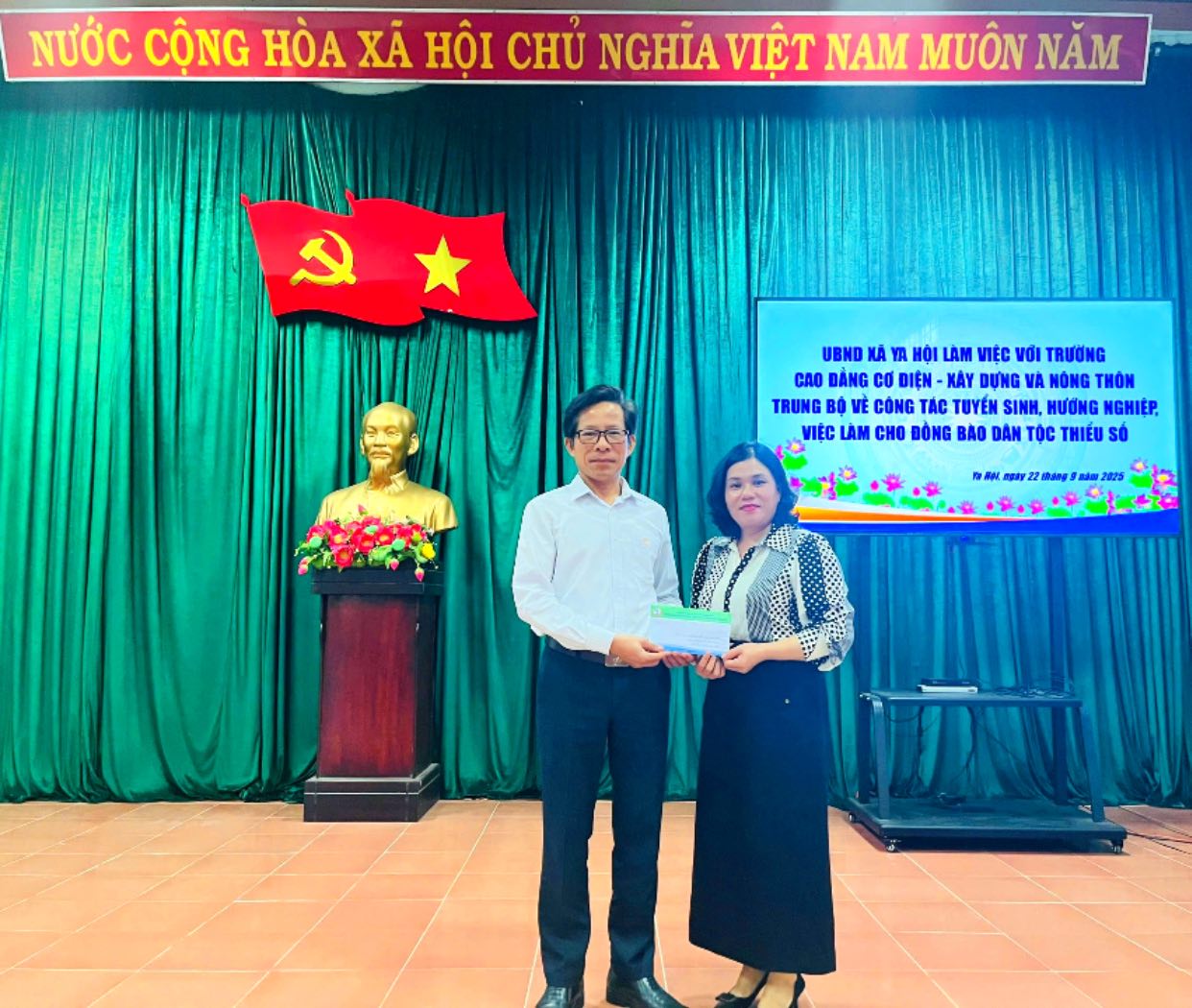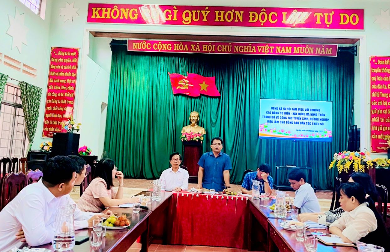 Chiều ngày 22/9/2025, tại Hội trường Ủy ban nhân dân xã Ya Hội đã diễn ra buổi làm việc giữa Ủy ban nhân dân xã Ya Hội và Trường Cao đẳng Cơ điện - Xây dựng và Nông thôn Trung bộ về công tác tuyển sinh, hướng nghiệp, việc làm cho đồng bào dân tộc thiểu số. Buổi làm việc được tổ chức nhằm trao đổi, thảo luận về công tác tuyển sinh, hướng nghiệp và giải quyết việc làm cho đồng bào dân tộc thiểu số trên địa bàn xã.