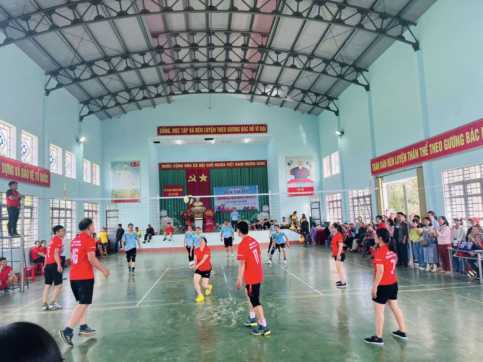 Các vận động viên tranh tài ở hai môn thi đấu chính: bóng chuyền và kéo co. Không khí thi đấu diễn ra sôi nổi, quyết liệt, nhận được sự cổ vũ nhiệt tình của đông đảo Nhân dân, tạo nên bầu không khí vui tươi, đoàn kết trong toàn xã.